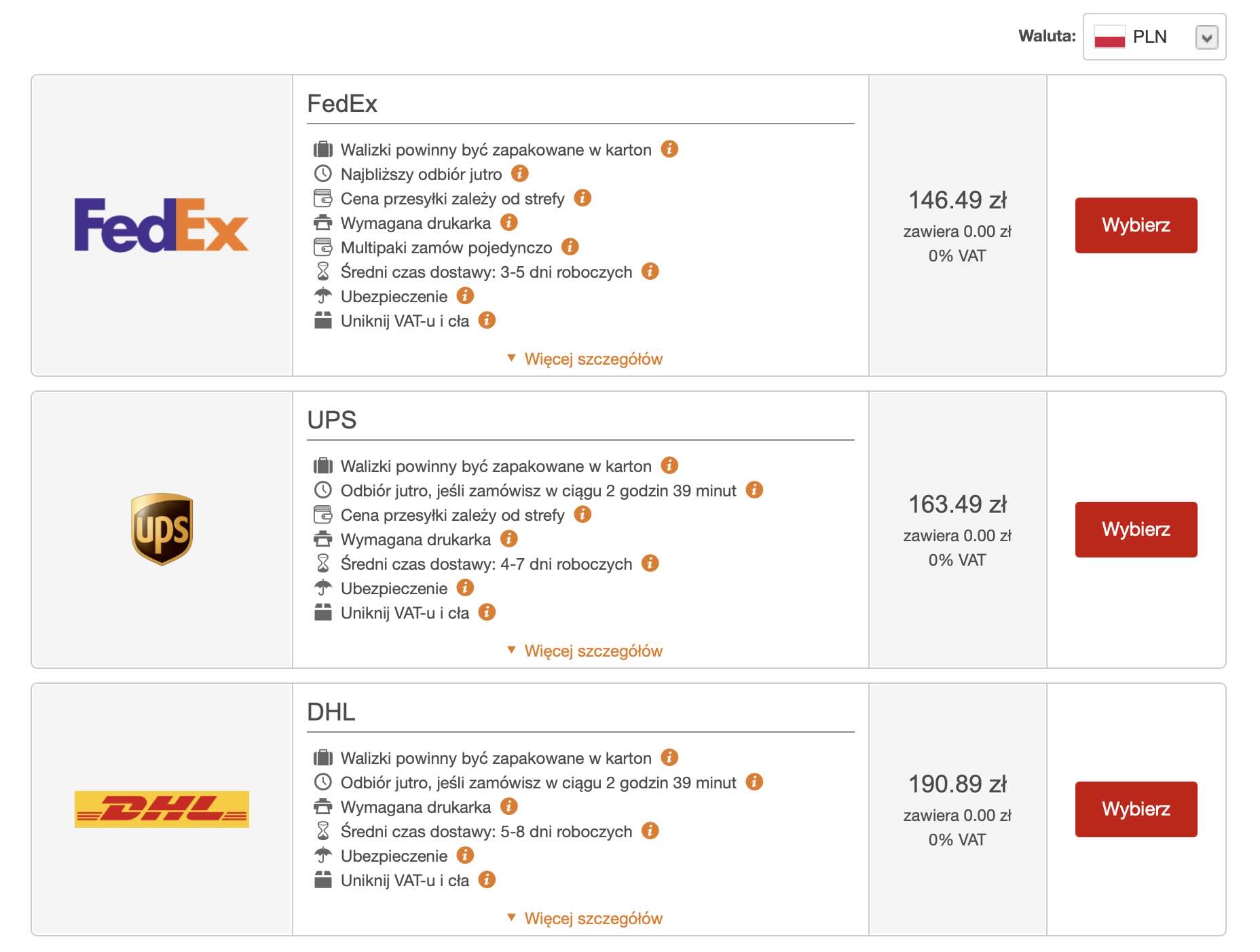 Za kuriera FedEx zapłacimy 146,49 zł, a za paczkę do Anglii o wadze 20 kg w firmie UPS ok. 164 zł. Oba serwisy są tańsze niż nadanie dodatkowego bagażu.